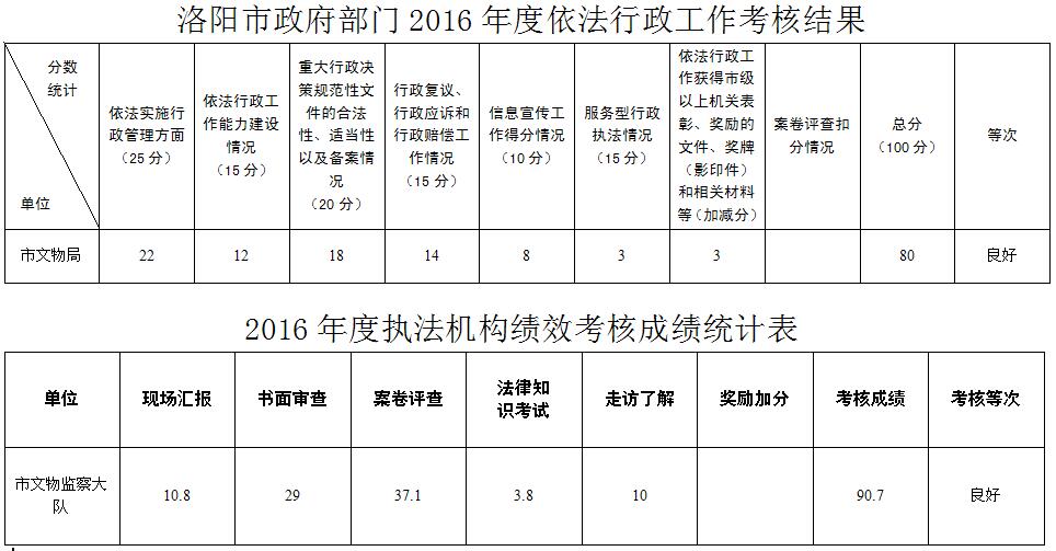 洛阳市政府部门2016年度依法行政工作考核结果