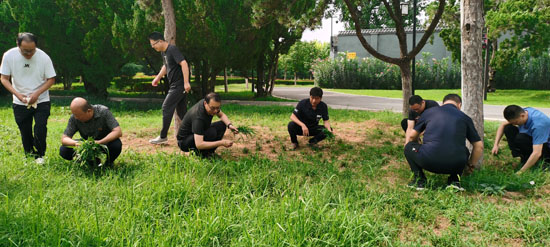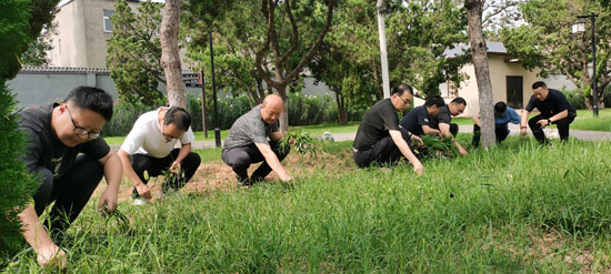 我为党旗添光彩”活动。一支部党员在支部书记的带领下,配合陈列保管部的同志搬运文物。活动现场,大家听从指挥,各司其职,严格按照规定操作,将文物安全搬运至4号库房内。夏季是杂草生长旺盛的季节,加之雨水充沛,草坪内的杂草长得很快。为给游客提供优美的参观环境,二支部党员头顶烈日,冒着酷暑,在支部书记的带领下,配合默契,干劲十足,将景陵周围草坪内的杂草一一拔除干净。