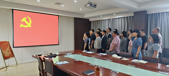 “七一”当天,在该馆党员活动室内开展了重温入党誓词活动。全体党员佩戴党员徽章,面向党旗,高举右拳,庄严宣誓。“我志愿加入中国共产党,拥护党的纲领,遵守党的章程,履行党员义务……随时准备为党和人民牺牲一切,永不叛党。”党员们在铮铮誓言中感悟中国共产党人的信仰及为民奉献的初心,用铿锵誓言表达了对党的无限忠诚和为共产主义奋斗终身的坚定信念。