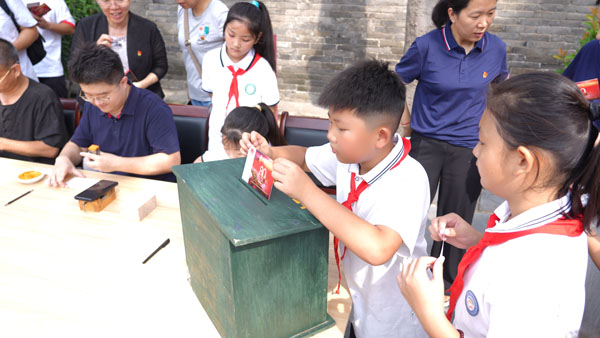 仪式结束后,与会领导和嘉宾移步展厅参观展览,同学们在党旗前书写纪念抗战胜利80周年明信片,以实际行动铭记历史、致敬先烈。
