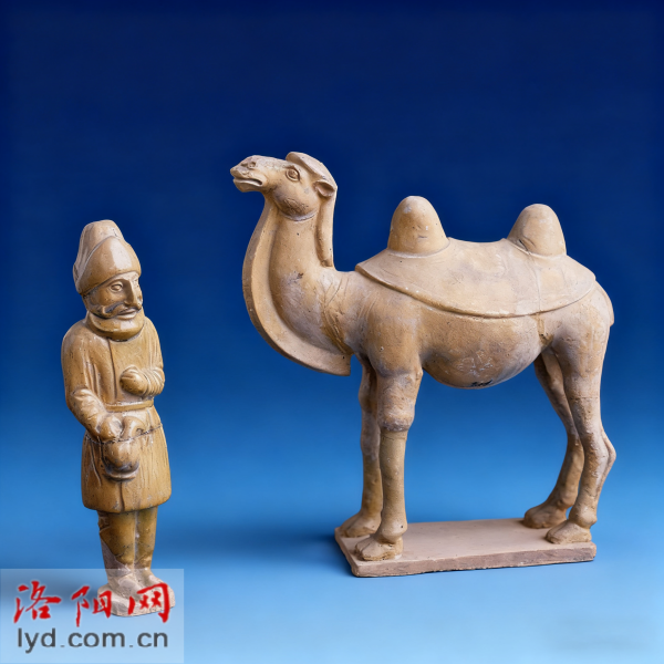 胡人俑与骆驼俑(东周至汉代),洛阳出土。是洛阳地区同期文化交流与社会风貌的实物体现。拍于1984年3月。