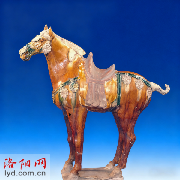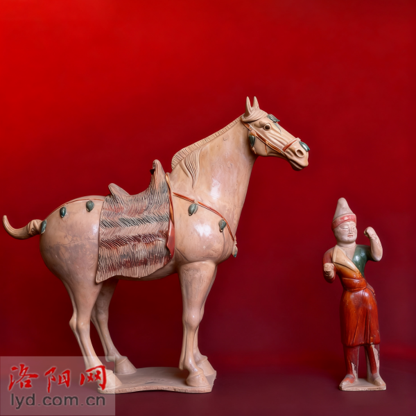 三彩马与胡人俑(唐代)。二者生动展现了唐代洛阳作为丝绸之路节点的文化交流盛景,是研究唐代中外交流与陶瓷工艺的珍贵实物。拍摄于1984年3月。