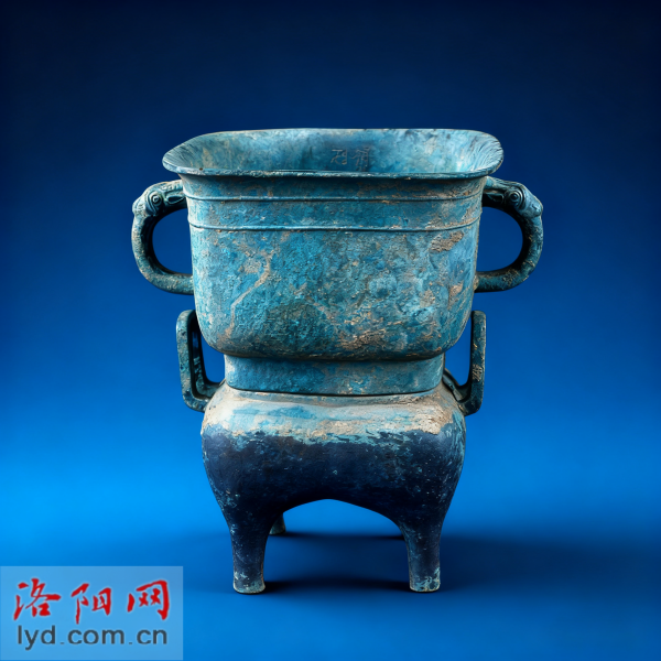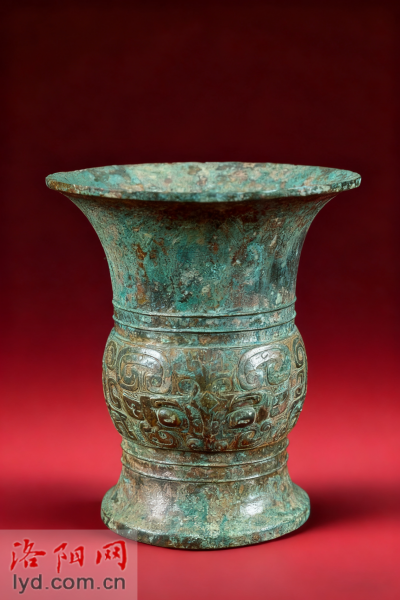青铜尊(东周至汉代),洛阳出土,器型典雅,腹部饰有兽面纹(饕餮纹),是洛阳地区该时期青铜铸造工艺与礼乐文化的典型体现,承载着东周至汉代的历史与艺术价值。拍摄于1984年3月。
