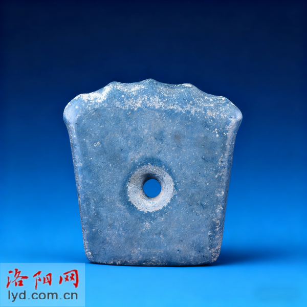 石钺(夏代),是古代先民的重要生产或礼仪用具,见证了夏代洛阳的早期文明发展。拍摄于1984年3月。