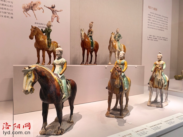 洛阳市考古研究院、洛阳博物馆、洛阳古墓博物馆、新安博物馆、偃师博物馆等文博机构联合参展,提供了包括唐三彩骆驼、文官俑、天王俑、牵马男胡俑、陶牛车等在内的代表性文物,共同展现了唐代东都洛阳的工艺高峰与时代风貌。