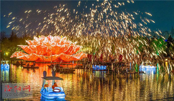 元宵节临近,市民在隋唐城遗址植物园赏花灯、观看打铁花表演,园内到处洋溢着欢乐祥和的节庆氛围。